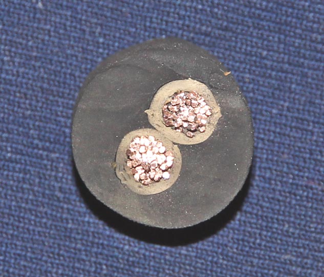 Толстые кабель - диаметр 17 мм, два провода по 19 жил, если не ошибаюсь.