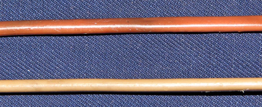 Провод пластмассовый одножильный. Диаметр изоляции ~ от 3,3 до 4,0 мм; жила медь, диаметр 1,1 мм