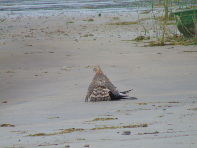 Пошел глянуть в чем дело. На песке трепыхается ворона, а на ней сидит тетеревятник и долбит ее клювом. Пока бегал за фотоаппаратом вороны поутихли. Видимо потому, что товарка их перестала подавать признаки жизни. Попробовал приблизиться к ястребу, но он меня моментально "срисовал", тяжело поднялся с добычей в лапах и плюхнулся в ближайшие камыши.