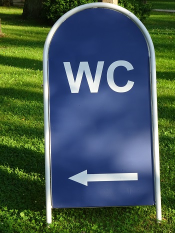 Назвал бы так: WC, вообще говоря, закрыт. Но если очень нужно, то можно. Но на открытом воздухе!