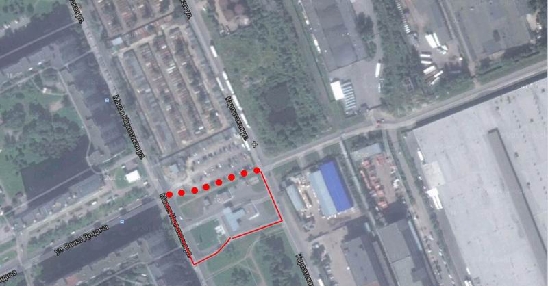 Также не существует указанного в Постановлении правительства СПб начала ул. Кованько на участке, примыкающем к Бухарестской ул. (показан точками):