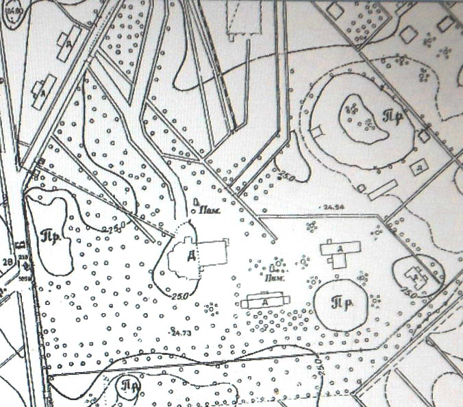 На планах Треста ГРИИ 1946 и 1970 г. обнаружился ещё один памятник(восточнее дачи) в придачу к памятнику двум "великим вождям":