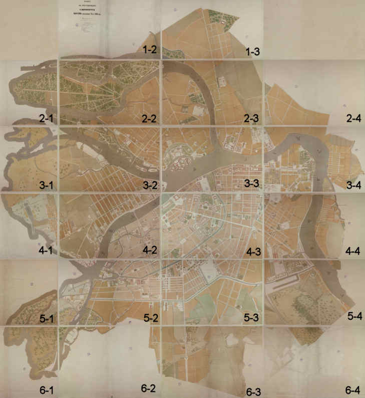 Весь план на 22 листах (531х837 мм). Масштаб 1:4200.