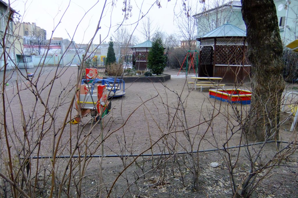 От фонтана на Зелениной, 13 осталась гранитная чаша, превращённая в клумбу: