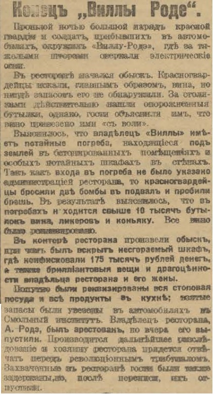 Можно предположить дату окончательного закрытия Виллы Роде, как кабаре - 19 марта 1918.