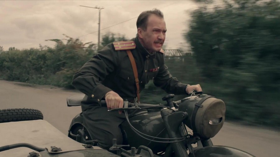 Сцена поездки полковника Петрова на мотоцикле в Петрозаводск.