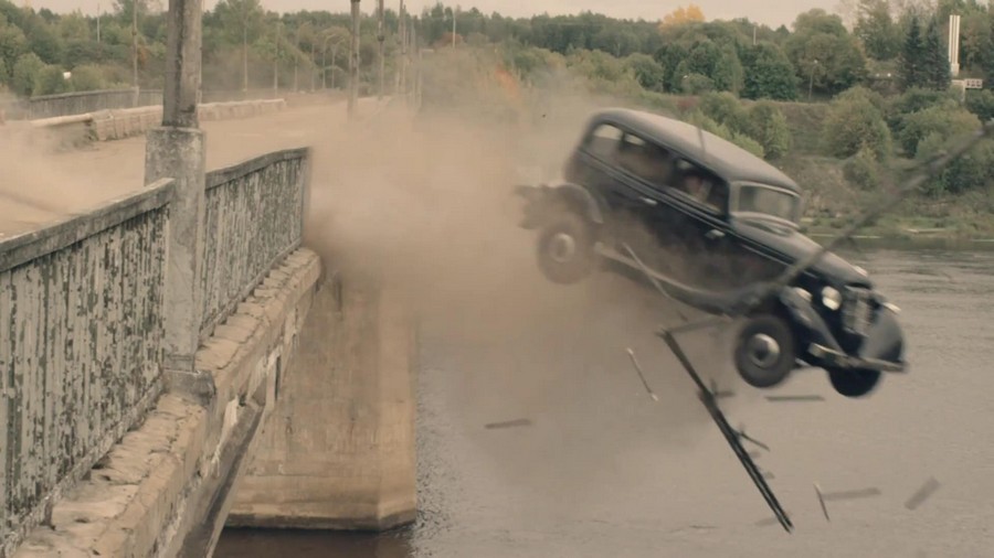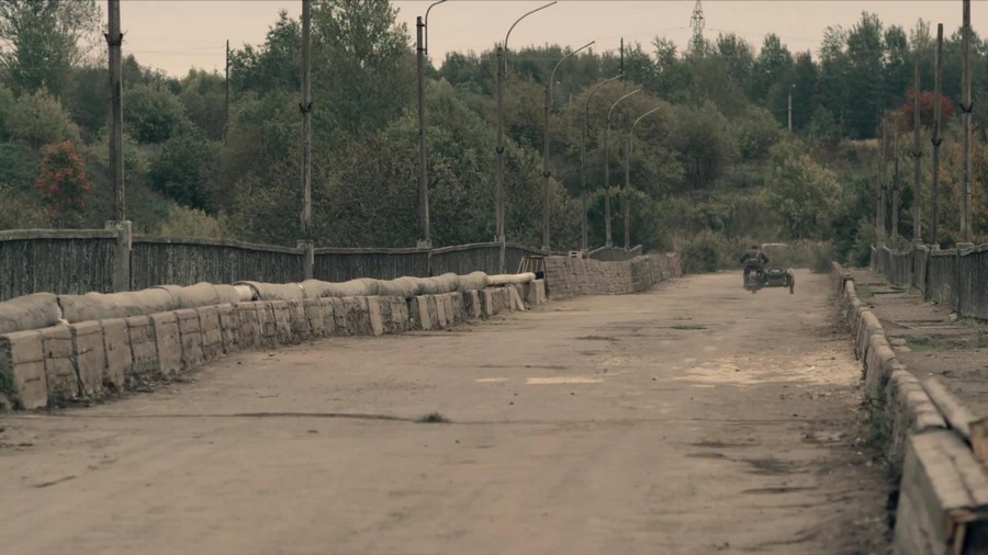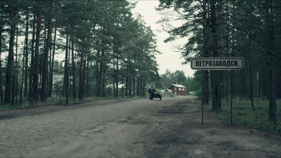 Сцена поездки полковника Петрова на мотоцикле в Петрозаводск.