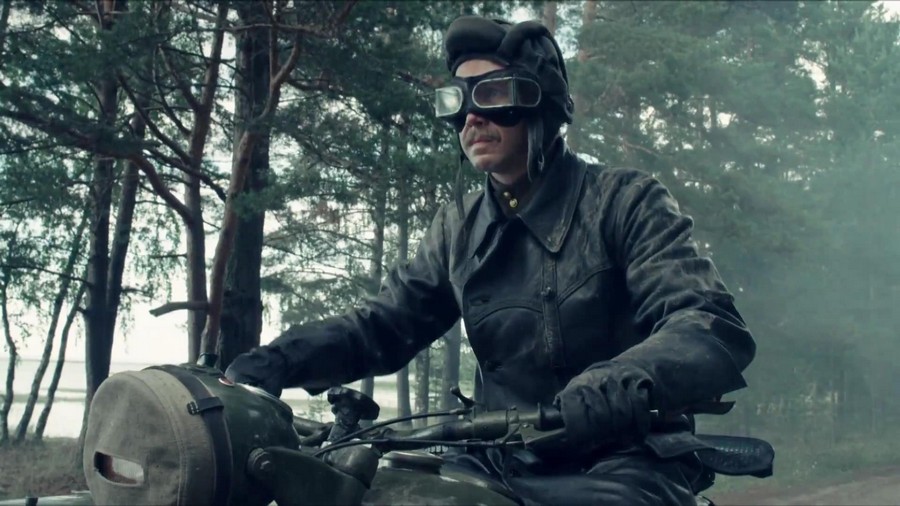 Сцена поездки полковника Петрова на мотоцикле в Петрозаводск.