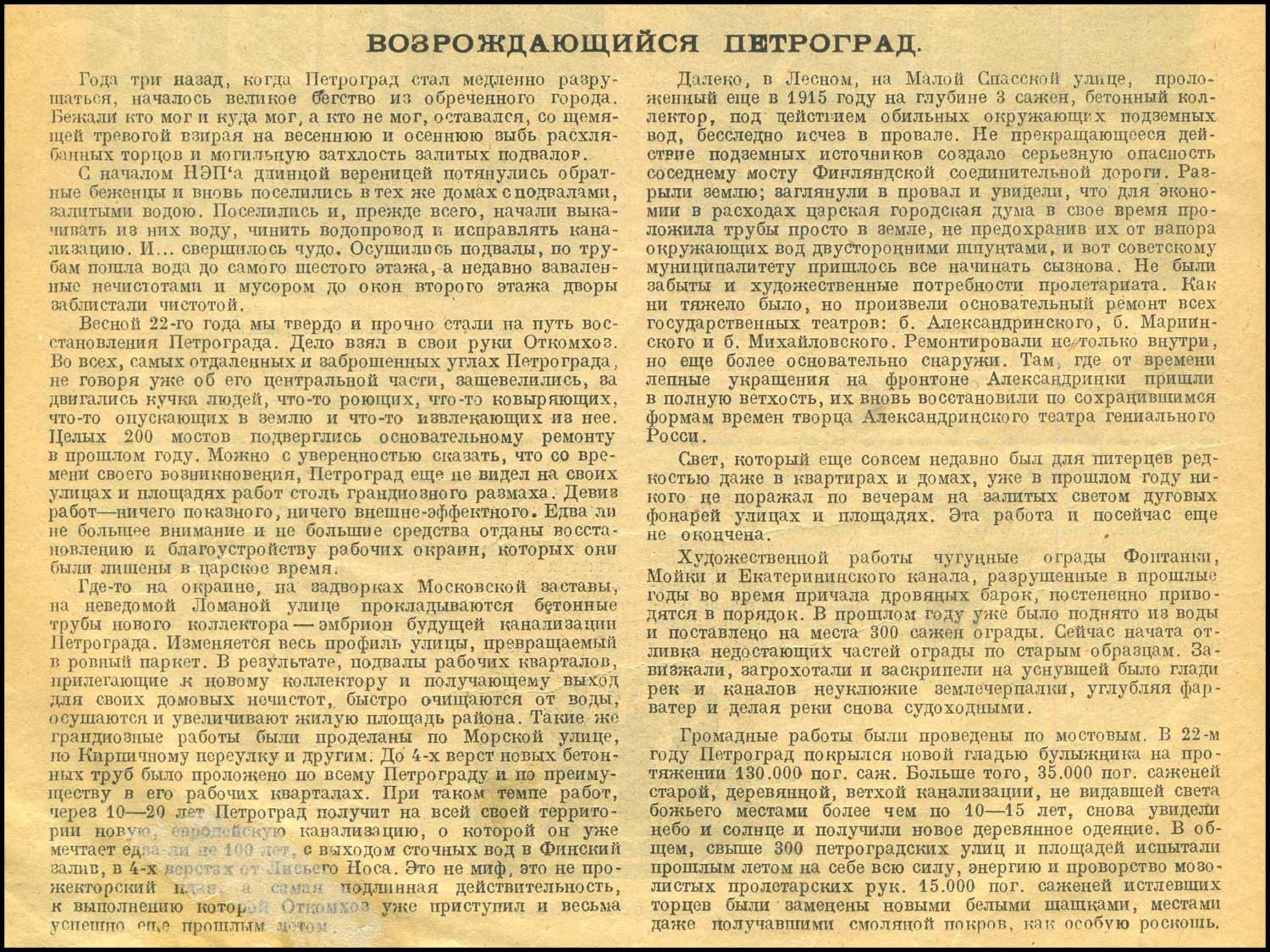 "На неведомой Ломаной улице.. подвалы рабочих кварталов.. быстро очищаются от воды, осушаются и увеличивают жилую площадь района."