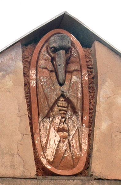 Вчера с фасада дома №24 по Лахтинской улице сбита скульптура Мефистофеля, украшавшая фасад здания 1910 года постройки. Напротив строится церковь.