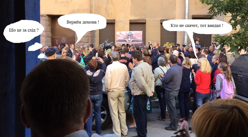 Если честно - разочарована ... (Ну, убейте меня, отсталую и непросвещенную!). Ждала бОльшего. ОЧЕНЬ ждала, что баннер с Чёртом водрузят на покалеченный фасад, но ...