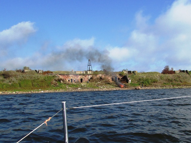 Доброго времени суток всем! Поделюсь немножко результатами походов по Кронштадтским фортам минувшим летом. Ходим, в общем-то, регулярно, замечая происходящие изменения, как правило, в сторону постепенного разрушения, а нынче наоборот, какой-то прогресс, что ли, наметился, не ясно только, к добру, или к худу? Уже пару месяцев на фортах, кочуя с одного на другой, работает бригада, изводящая "под корень" покрывающие острова заросли, и тут же их сжигающая. Практически полностью очистили от зелени второй и пятый северные форты (что лично нам обидно, в этих зарослях по два ведра подосиновиков собирали), на очереди, похоже, форт "Обручев". Не понятно, с какой целью все это делается? "Наведение порядка"?