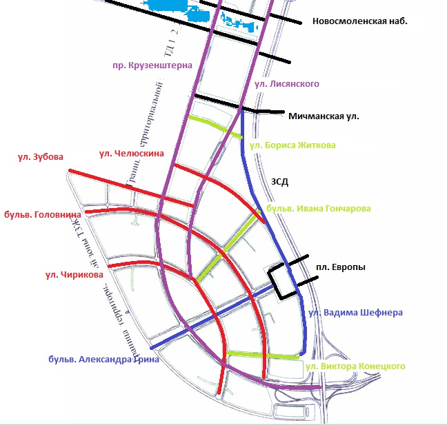 Начало » Санкт-Петербург » Топонимика » Названия новых проездов на намыве (Морской Фасад) (+)