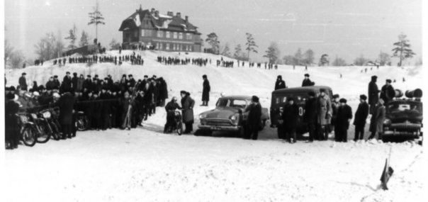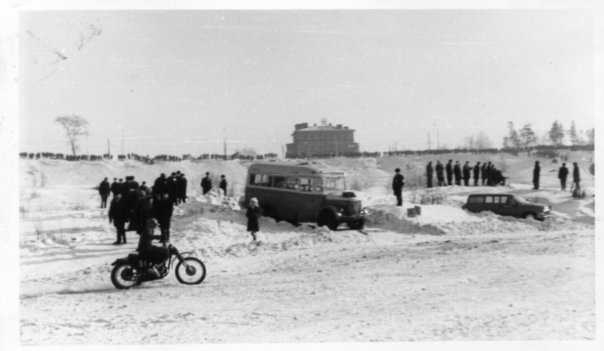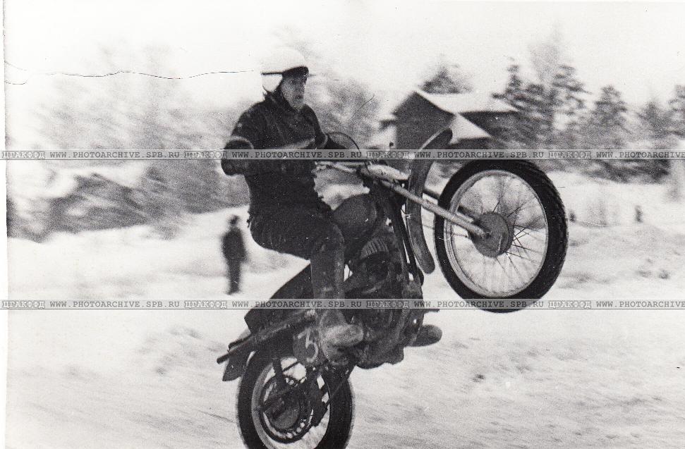 Зима 1969-70. Мотокросс в Озерках. Найдено ВКонтакте, из архива А.Б.Колосова.