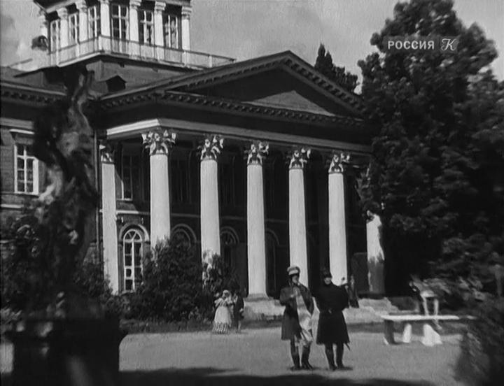 В общем, беседку, снятую в фильме, найти пока не удалось. Вполне возможно, что она просто не сохранилась, но, скорее всего, сцена с беседкой снята где-то под Ленинградом. Вряд ли "Ленфильм" выезжал далеко, когда вокруг Ленинграда до войны таких усадебных построек были десятки.