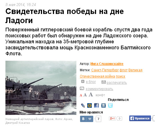 | Цитата: | Немецкую баржу, затонувшую в Ладожском озере, готовят к подъему