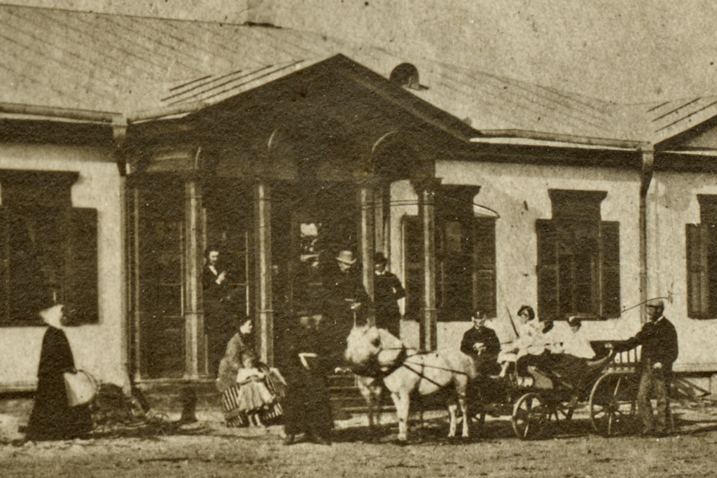 На фотографии запечатлено здание, напоминающее типовую почтовую станцию