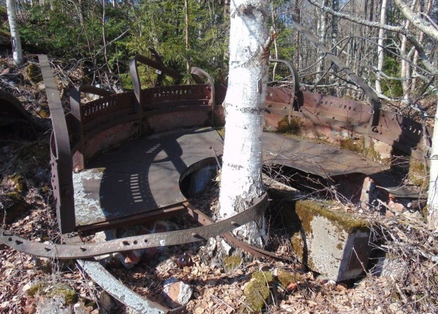 Взрыв похоже был не очень сильный. Маяк просто рухнул вниз. Удивительно что железная будка и площадка слетели сверху вниз. И до сих пор лежат среди берез , выросших на руинах. При желании наверное можно ее собрать.