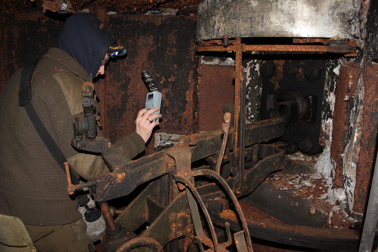 Но это и не обязательно. Да, он выдаст точные, 100% сумасшедшие цифры, вопрос - что потом с этим делать - не проводить же деактивацию или замуровку бетонными пробками... Чтобы проверить наличие радиации достаточно нормального поискового дозиметра. Импульсы (мой в поисковом режиме издаёт звук на каждом десятом импульсе) сильно учащаются уже при входе в дот.
