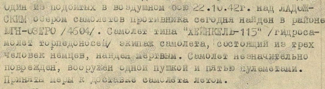Да нет, его подбили далеко от Ладоги, в Архангельской области, а упал он в Пудожском районе Карелии. Вывозил эстонских диверсантов с озера Лача.
