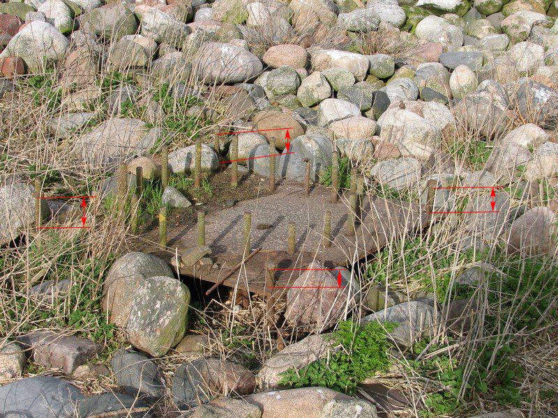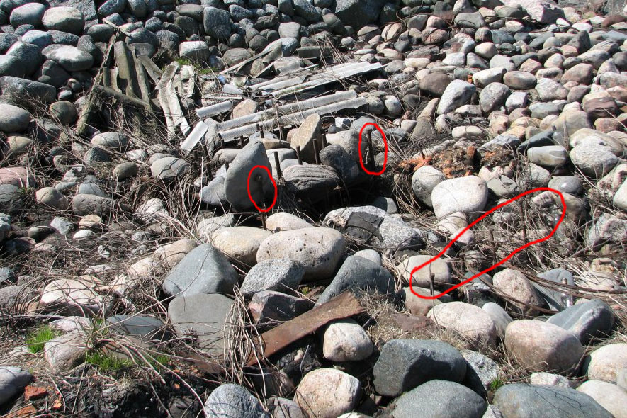 Справа - это шпильки соединяющие шпальную кладку. Слева (которые без гаек) - шпильки на которые крепилась система. Там под камнями еще плита сохранилась.