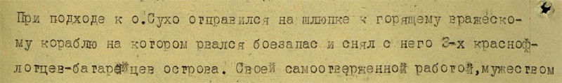 В результате осмотра инженерных сооружений на о. Сухо Инж-майором БОРИСОВЫМ В.В. к моменту операции 22.10.42 года было установлено: