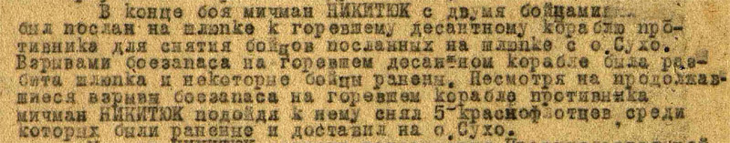 Не-не-не. Всё было проще. После того как немцы эвакуировали команды с паромов и отчалили в обратный путь, группа бойцов с Сухо на шлюпке направилась к одному из брошеных паромов. Намерения в общем понятные. Затем, пока они там шарились, якобы взрывом боезапаса шлюпку разворотило, самих бойцов ранило и ТЩ-100 их спас.