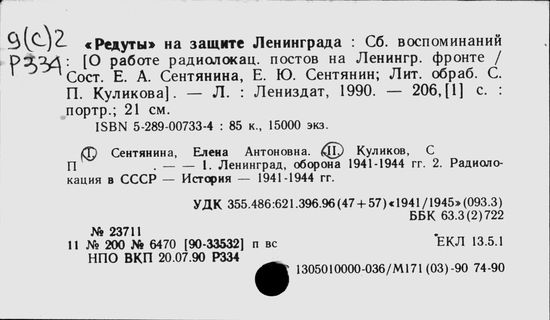 В 1990 году вышла книга "Редуты" на защите Ленинграда.