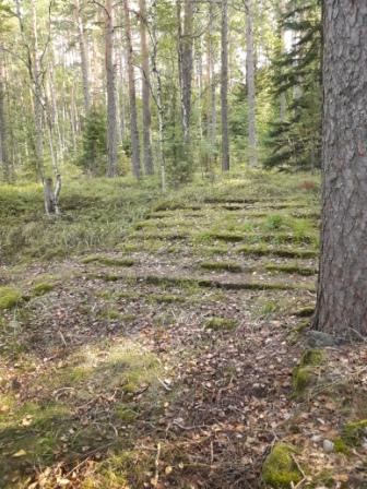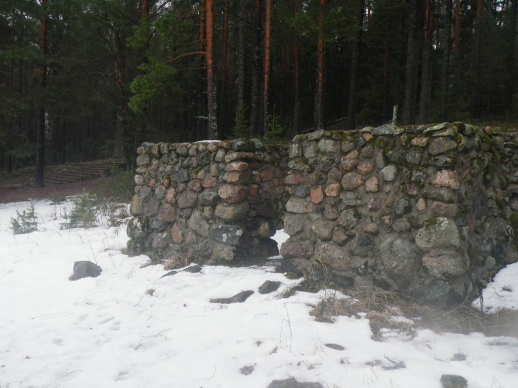 Интересно, на каких основаниях сделан вывод, что цоколь на берегу - современное сооружение? По кладке на современное он не очень похож, а вот на фундаменты разрушенных финских хуторов (много таких на Карельском перешейке повидала) - весьма и весьма. :)