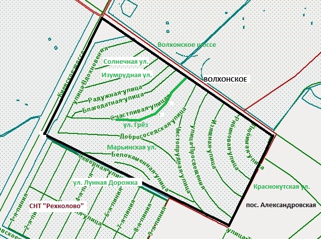 примечание: улицы в бывшем садоводстве "Волхонское" были названы садоводами в начале 1990-х.