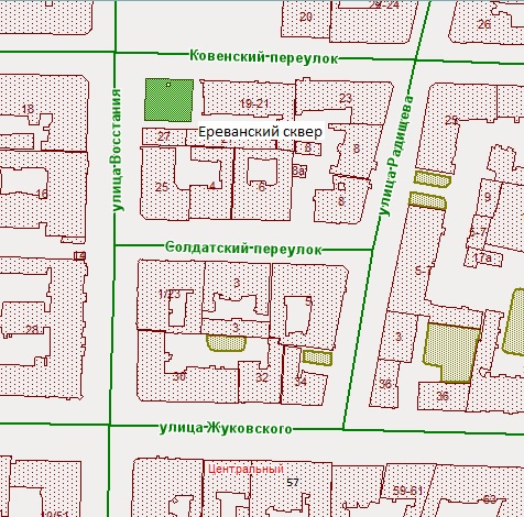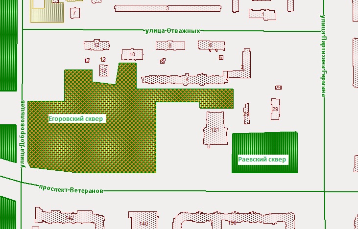 Днепропетровский сквер, Егоровский сквер, Ереванский сквер, сквер Желобовского, Левашовский сквер, Прилукский сквер, Раевский сквер, Солунский сквер
