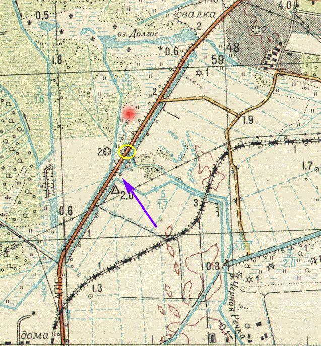 "...Само собой, что канава под насыпью была, и не одна, а две - это же видно на топокарте. Но что туда стекало? В первую - ваш отмеченный красной точкой родник, во вторую - часть стока из озера Долгое....." ( https://www.forum.aroundspb.ru/index.php?t=msg&th=1578&am p;goto=130229#msg_130229)