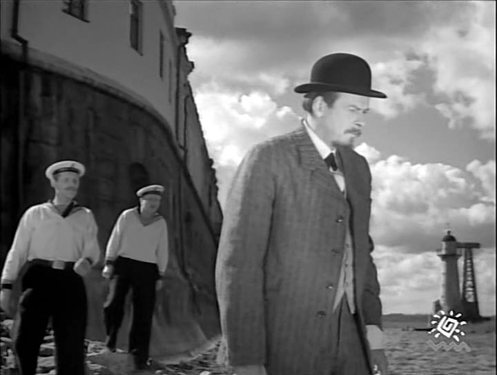 После неприятного разговора с Маркони, Попов покидает итальянский корабль, не найдя в приборах Маркони ничего нового. Вопрос: Что за эллинги мы видим на заднем плане? Кронштадский морской завод или что-то другое?