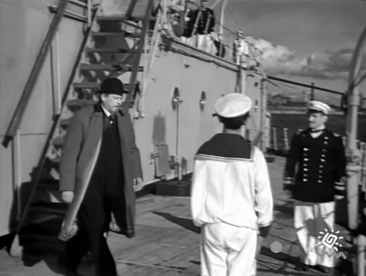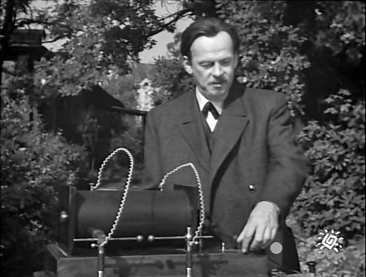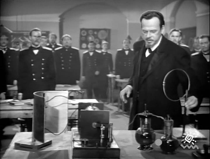По сюжету фильма Морское министерство возложило на Попова миссию ознакомиться с приборами Маркони, которые тот хотел продать для установки на кораблях российского флота. И Попов на катере отправился на крейсер "Карло Альберто"...