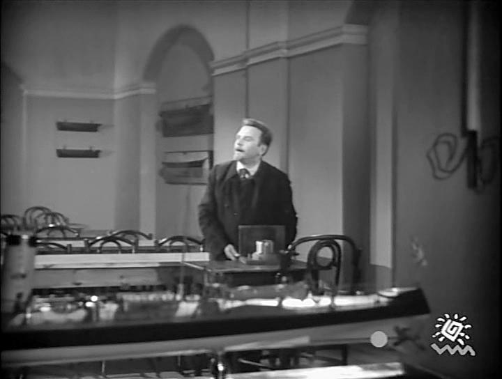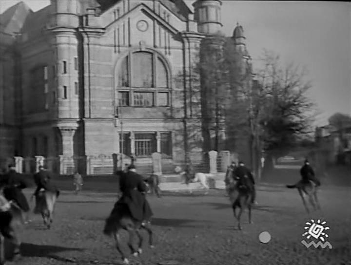 Далее в фильме идет целый ряд съемок в павильонах, квартире, снова в этой же аудитории, когда в марте 1896 года была передана первая радиограмма, состоящая из слов "Генрих Герц", в гостинице, где по сюжету остановился предприимчивый итальянец Маркони. Эти кадры не имеют отношения к краеведению и я их опускаю.