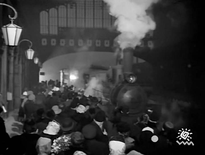 Как мы видим, съемки велись на Варшавском вокзале, хотя Попов возвращался из Котки на Финляндский вокзал.