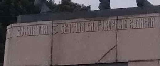 На постаменте, стилизованными под славянскую вязь, выбит в граните текст: