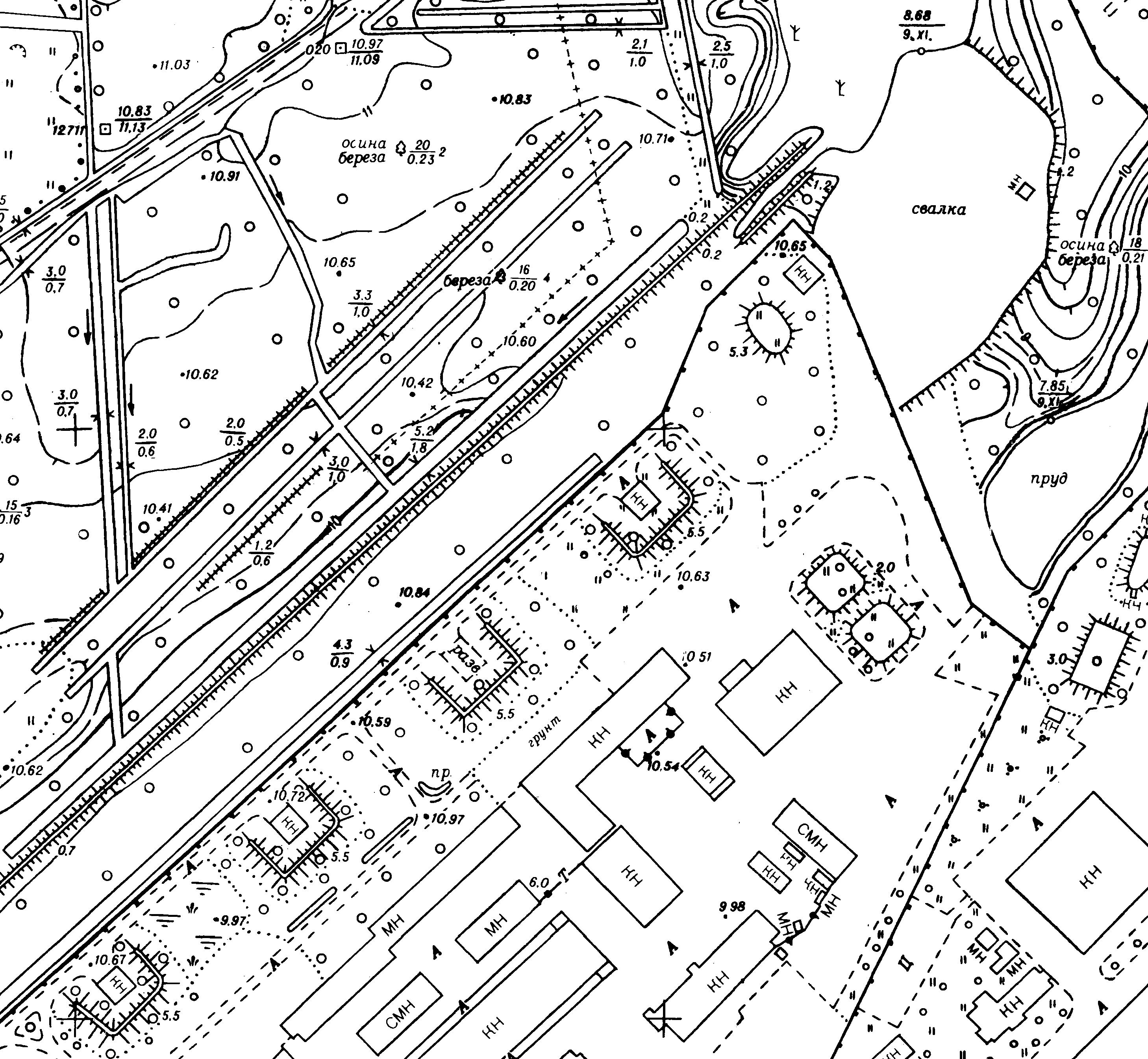 плохо дело, раз такое там. :( Лес с оставшимися постройками (да и тем известным большим погребем-складом) между пробитых дорог, скорее всего, вырубят.