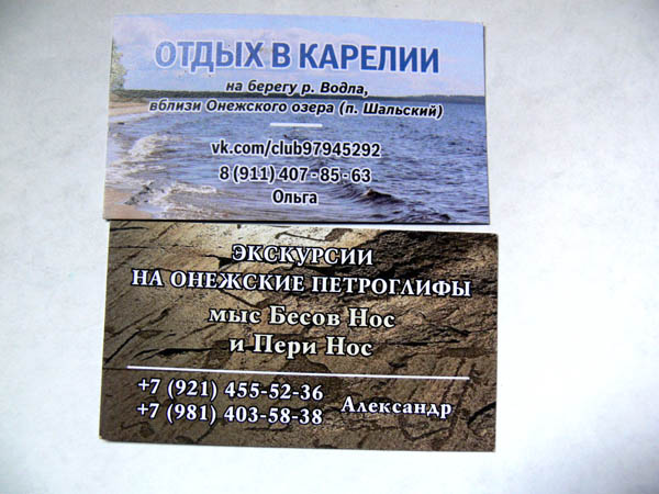 Обоснования выбора: 1) - в отличие от остальных, капитан не просто довозит, а потом забирает, но ещё и показывает петроглифы ногтями, потому что далеко не все (даже самые интересные) найдешь. Если можно любить петроглифы, то этот Александр их именно любит и знает о них много, причем, что приятно, никакой мистики и попсы не излагает. 2) - в отличие от остальных, он возит в нужное время и погоду. Некоторые мои собеседники хлестались, что у них такой ядреный катер - они и в шторм, и в дождь, и в туман готовы везти. Так вот, туда нужно попадать по боле-мене тихой воде во второй половине дня. Освещение очень влияет (это не Альта, где всё суриком подкрашено, здесь по-честному), к тому же большинство петроглифов (и сам Бес в т.ч.) расположены у самого уреза, в шторм их просто не увидеть. 3) Александр возит не только на Бесов, но и на Пери Нос (всё в одну ездку), а на этом Пери не менее крутые мастера работали, и сюжеты немного другие. 4) за экскурсию (3+ часа) он берет 3500 рублей, ниже цен я не нашел, а некоторые просят и вдвое (это, действительно, не первый довод, первые три важнее). Катер, в принципе, для троих-четверых пассажиров. 5) У хозяев есть гостевые дома в 30 метрах от их причала, тихо, спокойно, мангально. Дом стоит 2500 за ночь. Пиво везти из Пудожа.