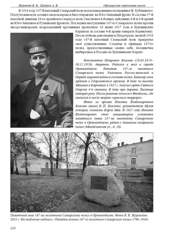В 2013 году вышла книга Владимира Журавлёва «Ораниенбаум. Хронограф Офицерской стрелковой школы». Работа была написана к 150-летнему юбилею Учебного пехотного батальона и 130-летию Офицерской стрелковой школы. Книга вызвала повышенный интерес у читателей, её тираж разошёлся практически сразу после выхода. Учитывая возрастающий интерес к серьёзной краеведческой и военно-исторической литературе, было принято решение вновь обратиться к этой теме.