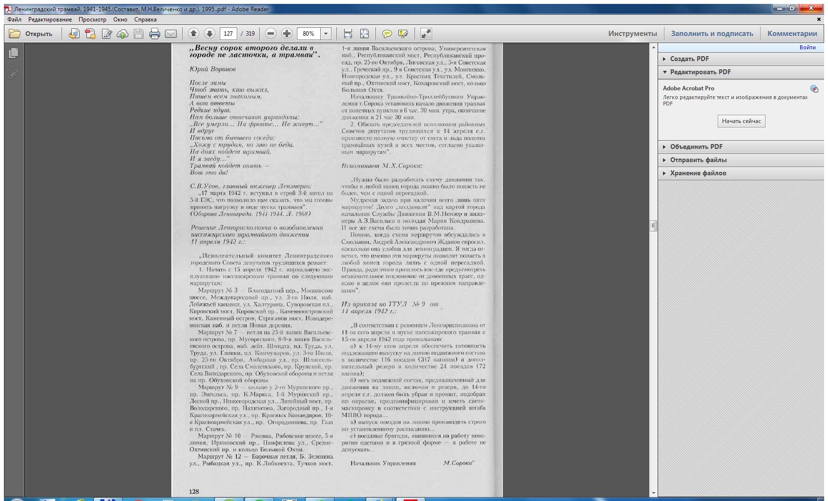 По поводу снятия трамвая с Суворовского проспекта, которое, как выяснилось, произошло перед самой войной.