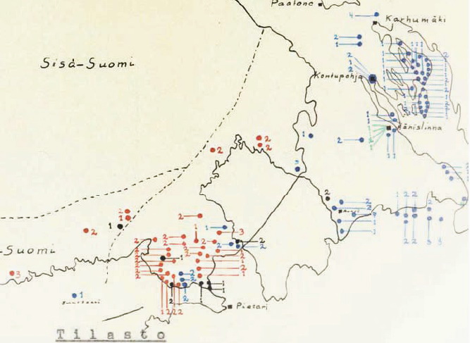 Материалы по задержанным советским десантникам/разведчикам есть в Нацархиве (документы отдела контрразведки Ставки/Valvontaosasto ), но они не оцифрованы. Там даже разблюдовка имеется по годам, местам, численности групп, способе заброски (красный - парашют, синий - пешеход) и т. д.