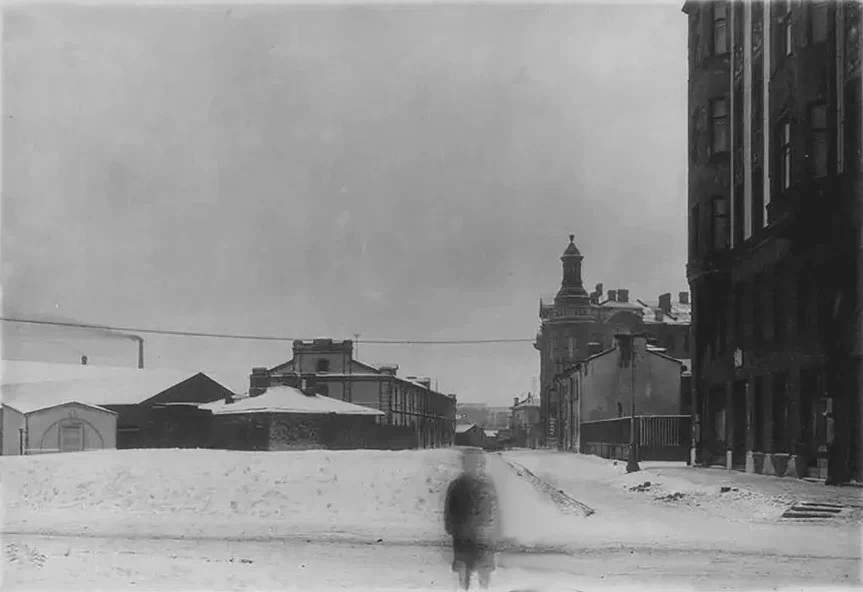 Да, в проекте либо не все чертежи, либо проект изменился. Башня была на углу Клинической и Астраханской. Вот фото Клинической улицы 1926-30 годов: