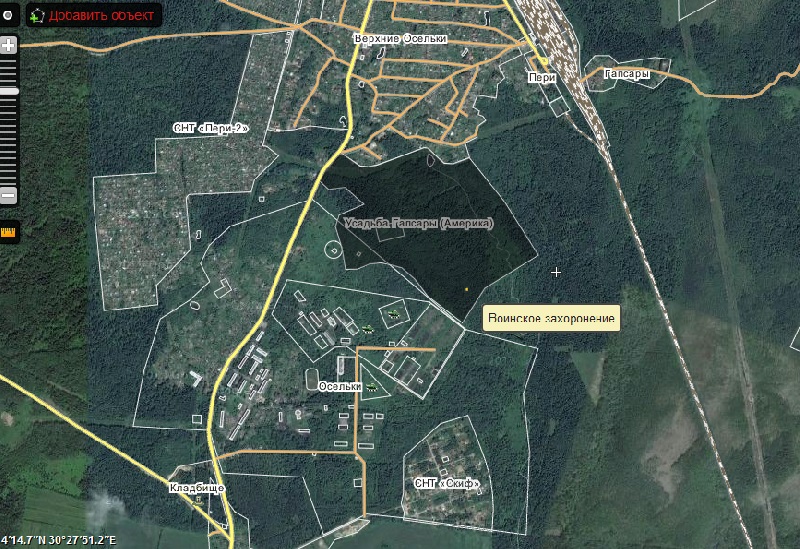 Анализ карты дает одну наводку - на южной границе поселка В. Осельки есть лесной массив, представляющий собой явно заросший парк усадебного типа.