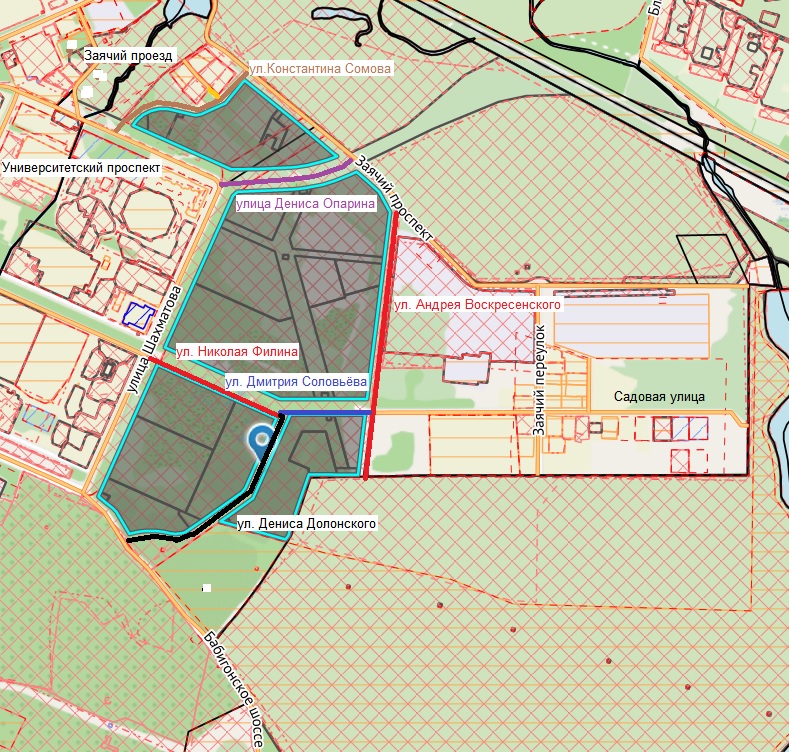 улица Андрея Воскресенского, улица Дениса Долонского, улица Дениса Опарина, улица Дмитрия Соловьёва, улица Константина Сомова, улица Николая Филина
