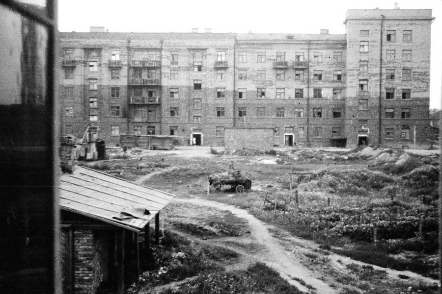 Набережная Мартынова. Вдали 2-й Елагин мост. Судя по ТВ-антеннам на крыше - 1950-е годы.