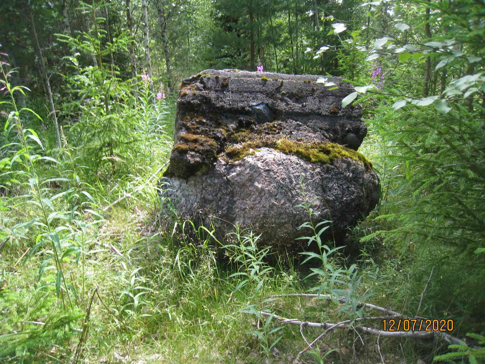И вообще, для чего могла пригодиться такая штука для жизни финнсого хутора? Это творение находится на поляне на расстоянии около 150 м от главного дома хутора, вокруг камня никаких остатков построек не обнаружил. Может хотели ваять какой-нибудь памятник из ближайшего найденного камня?