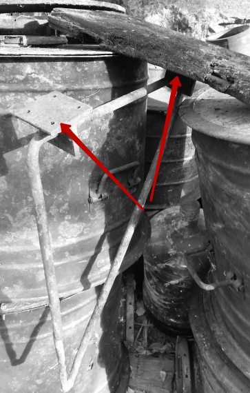 4. А еще меня сбили с толку поворотные кронштейны, больше по размерам, чем от нар (они тоже на фото для масштаба). Это кронштейны под что-то большое по площади, но не под большую нагрузку. Никаких балок крепления, как для нар, в ДОТе нет.