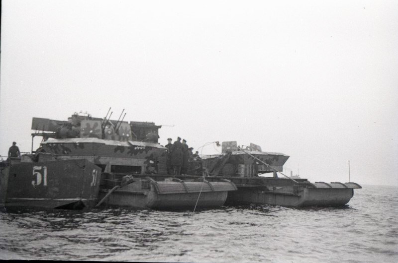 Интересный момент, что к нему пришвартована баржа (тендер?) с бортовым 51, а он сам вскоре войдет в строй как ДБ-51.
