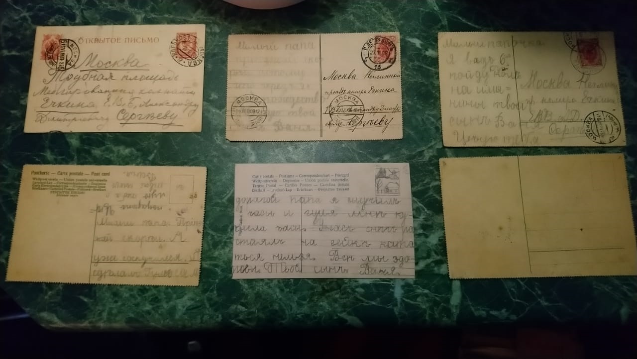 Видимо их собирала женская часть рода Сергеевых. Есть ещё письма с фронта 1941-45г (встречается фамилия Яковлев(ва) ). Вроде из госпиталя, вроде врач. Тут надо древо генеалогическое рисовать со стрелами, обрабатывать имеющуюся инфу.